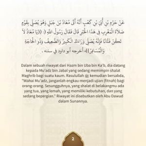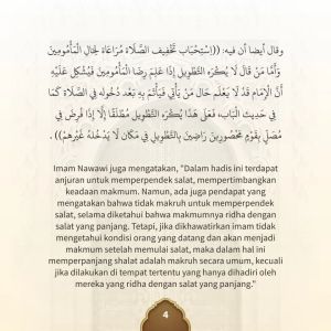 Dalam syariat, makna ibadah adalah relasi kepada Allah Swt. semata, sedangkan muamalah adalah relasi terhadap sesama makhluk. Dalam kenyataannya, dalam melaksanakan ibadah sekalipun, kita tidak lepas dari berhubungan dengan manusia lainnya. Beberapa Hadis Rasulullah menjelaskan untuk berkasih sayang terhadap sesama manusia, bahkan di dalam ibadah, diantara Hadis Rasulullah Saw. berisi anjuran untuk tidak berlama-lama dalam bacaan salat, memperhatikan mereka yang memiliki kondisi tubuh lemah, nasihat mulia agar tidak menjadi ujian bagi orang lain, dan anjuran memendekkan salat. Mari mengaji Hadis bersama Anjuran Bersikap Lembut dalam Salat (Hadis dikutip dari Kitab Nabiyurrahmah)