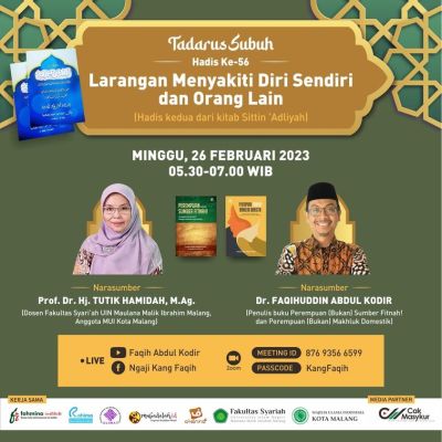 | Tuan Rumah | : | Prof. Dr. Hj. Tutik Hamidah, M.Ag. (Dosen Fakultas Syari'ah UIN Maulana Malik Ibrahim Malang, Anggota MUI Kota Malang) |