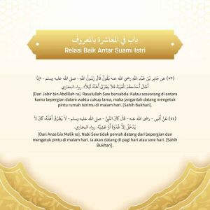 Salah satu cara merawat cinta ketika telah berumah tangga adalah dengan muasyarah bil ma'ruf. Dalam hal ini, ada banyak sekali teladan yang telah dicontohkan Rasulullah tentang adab mulia berelasi dalam rumah tangga.