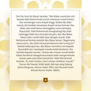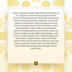 Rasulullah Muhammad Saw. sebagai teladan utama umat Islam terkenal dengan kelembutan dan kasih sayangnya. Sepanjang hidupnya, Rasulullah Saw. tidak pernah memukul siapa pun, termasuk istri-istrinya, anak-anaknya, bahkan budaknya sekali pun. Dalam banyak riwayat, disebutkan bahwa Rasulullah adalah sosok yang selalu memilih jalan damai dan menghindari segala bentuk kekerasan dalam penyelesaian masalah. Mari belajar keteladanan Rasulullah Saw. melalui Hadis dari Kitab Nabiyurrahmah Rasul Tak Pernah Memukul atau Melakukan Kekerasan.