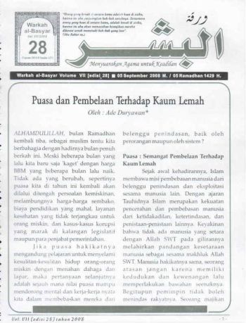 '''Puasa: Semangat Pembelaan Terhadap Kaum Lemah''' | |||