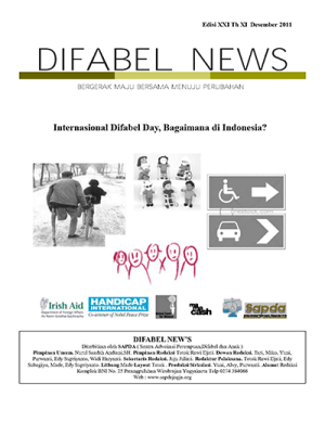 {{Infobox book|publisher=SAPDA|image=Berkas: | {{Infobox book|publisher=SAPDA|image=Berkas:Difabel News Ed21.png|italic title=Internasioanl Difabel Day, Bagaimana di Indoensia?|pub_date=Desember 2011|series=Th. XI Desember 2011 Edisi 21|title_orig=Internasioanl Difabel Day, Bagaimana di Indoensia?|name=|notes=[https://sapdajogja.org/2016/11/buletin-sapda-edisi-21-internasional-difabel-day-bagaimana-di-indonesia/ Download PDF]|image_caption=[https://sapdajogja.org/2016/11/buletin-sapda-edisi-21-internasional-difabel-day-bagaimana-di-indonesia/ Buletin Difabel News Edisi 21]}} | ||
