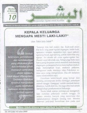Warkah Al-Basyar Volume VIII Tahun 2009; Edisi 10 Kepala Keluarga Mengapa Mesti Laki-laki?