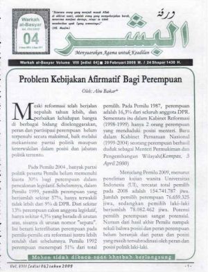 Warkah Al-Basyar Volume VIII Tahun 2009; Edisi 04 Probem Kebijakan Afirmatif Bagi Perempuan