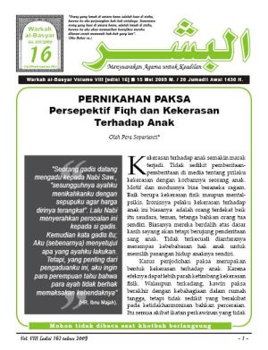 Warkah Al-Basyar Volume VIII Tahun 2009; Edisi 16 Pernikahan Paksa; Persepektif Fiqh dan Kekerasan Terhadap Anak: Perbedaan antara revisi