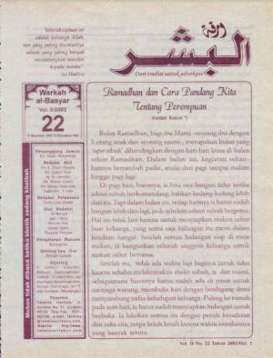 Warkah Al-Basyar Volume II Tahun 2003; Edisi 22 Ramadhan dan Cara Pandang Kita Tentang Perempuan