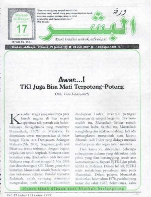 Warkah Al-Basyar Volume VI Tahun 2007; Edisi 17 Awas...!!! TKI Juga Bisa Mati Terpotong-potong