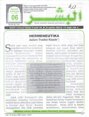 Warkah Al-Basyar Volume IV Tahun 2005; Edisi 06 Hermeneutika Dalam Tradisi Klasik