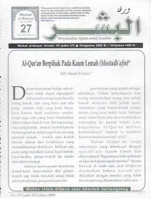 Warkah Al-Basyar Volume VII Tahun 2008; Edisi 27 Al-Qur'an Berpihak Pada Kaum Lemah (Mustad'afin)
