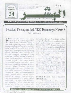 Warkah Al-Basyar Volume VII Tahun 2008; Edisi 34 Benarkah Perempuan Jadi TKW Hukumnya Haram?