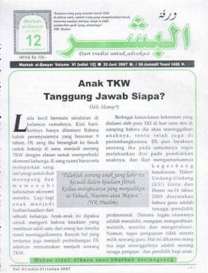 Warkah Al-Basyar Volume VI Tahun 2007; Edisi 12 Anak TKW, Tanggungjawab Siapa??