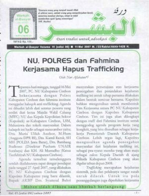 Warkah Al-Basyar Volume VI Tahun 2007; Edisi 06 NU, Polres, Dan Fahmina Kerjasama Hapus Trafiking