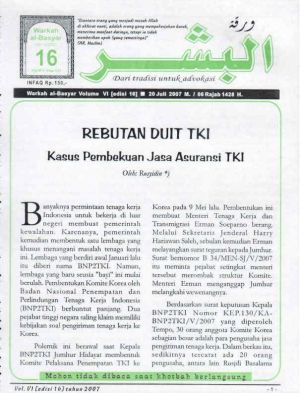 Warkah Al-Basyar Volume VI Tahun 2007; Edisi 16 Rebutan Duit TKI Kasus Pembekuan Jasa Asuransi TKI