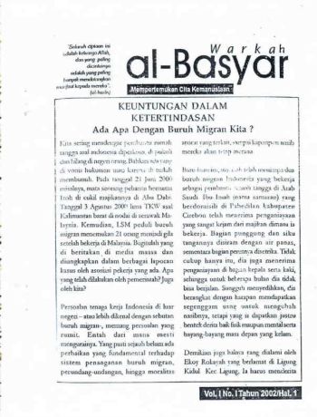 Warkah Al-Basyar Volume I Tahun 2002; Edisi 01 Keuntungan Dalam Ketertindasan; Ada Apa Dengan Buruh Migran Kita?