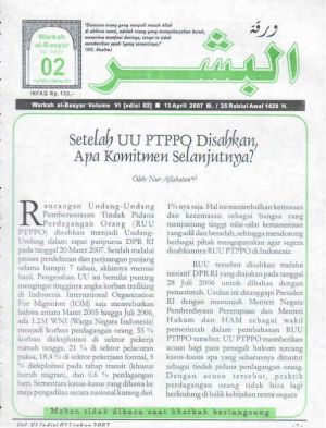 Warkah Al-Basyar Volume VI Tahun 2007; Edisi 02 Setelah UU PTPPO Disahkan, Apa Komitmen Selanjutnya?