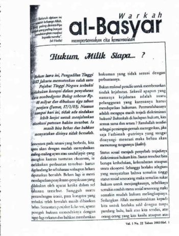 Warkah Al-Basyar Volume I Tahun 2003; Edisi 22 Hukum, Milik Siapa?