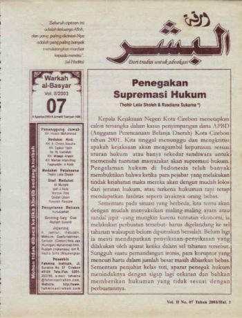 Warkah Al-Basyar Volume II Tahun 2003; Edisi 07 Penegakan Supremasi Hukum