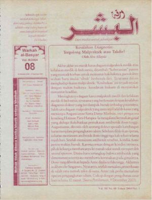 Warkah Al-Basyar Volume III Tahun 2004; Edisi 08 Kesalahan Diagnosis: Tergolong Malpraktek atau Takdir?