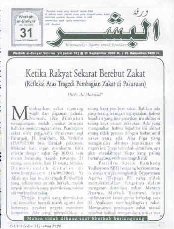 Warkah Al-Basyar Volume VII Tahun 2008; Edisi 31 Ketika Rakyat Sekarat Berebut Zakat (Refeksi Atas Tragedi Pembagian Zakat di Pasuruan)