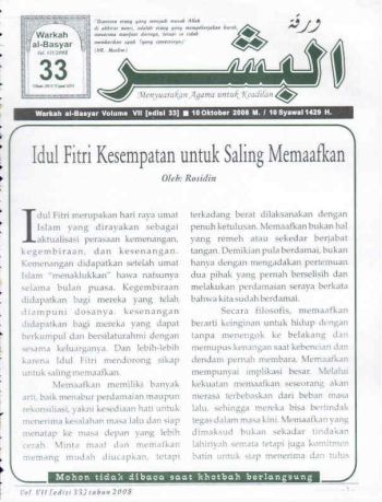 Warkah Al-Basyar Volume VII Tahun 2008; Edisi 33 Idul Fitri Kesempatan Untuk Saling Memaafkan