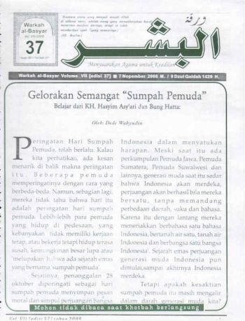 Warkah Al-Basyar Volume VII Tahun 2008; Edisi 37 Gelorakan Semangat "Sumpah Pemuda" Belajar dari Kiai Hajar Dewantara dan Bung Hatta