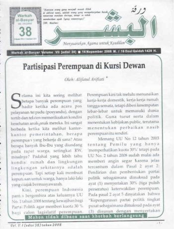 Warkah Al-Basyar Volume VII Tahun 2008; Edisi 38 Partisipasi Perempuan di Kursi Dewan