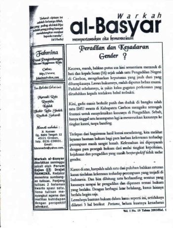 Warkah Al-Basyar Volume I Tahun 2003; Edisi 19 Peradilan Dan Kesadaran Gender?